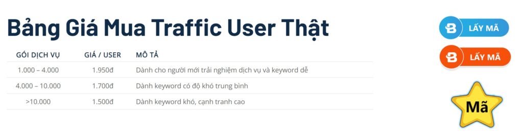 Bảng Giá Dịch Vụ Tại B Traffic User